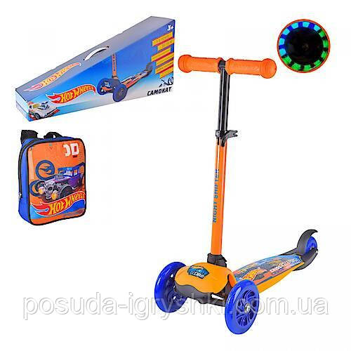Самокат дитячий MINI 3-х колісний LS2212 Hot Wheels, ПУ колеса світяться + рюкзак дитячий .