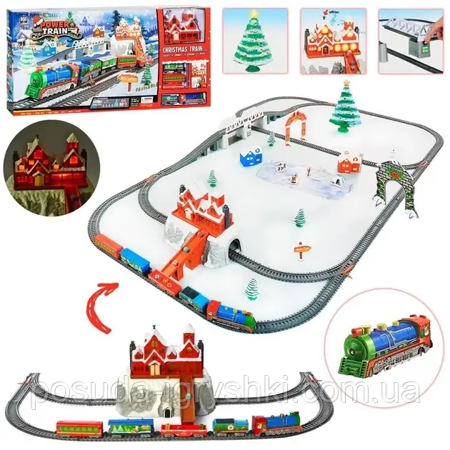 Залізниця 21816 довжина шляху 732см., потяг, новорічна ялинка, міст, музика, світло, на батарейках, в коробці, 90,5-40,5-10,5см.